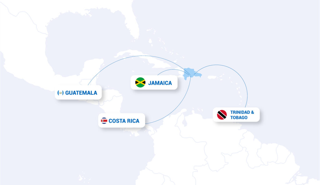 Actualmente nuestros productos están llegando a: Jamaica, Trinidad & Tobago, Guatemala y próximamente Costa Rica.